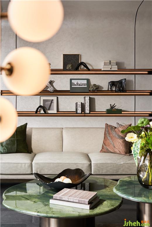 瓦松綠不過分艷麗,也不過于隱匿,是一種高級(jí)、優(yōu)雅、溫柔的綠色,是冷清中擁有生機(jī)感的綠色。以瓦松綠點(diǎn)綴空間,讓整個(gè)空間既有蓄勢(shì)的氛圍,又有向上的張力。