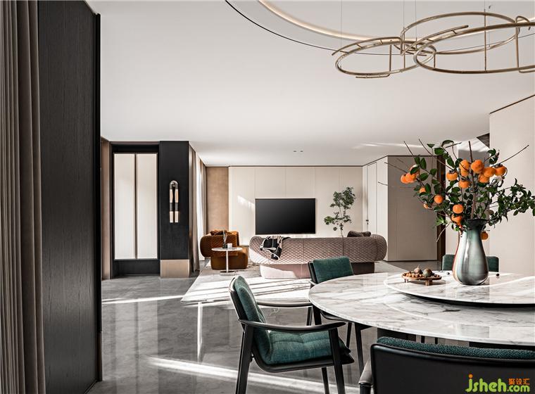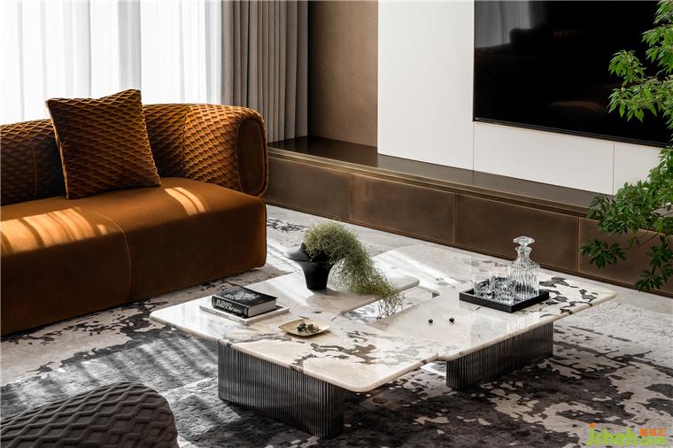 客廳摒棄繁冗,北京半山別墅設(shè)計以素雅的基底,凸顯材質(zhì)與工藝本身。地毯的表現(xiàn)形式與大理石的肌理,呼應(yīng)整體之余又演繹出多樣層次,賦予居者豐富的感官體驗。