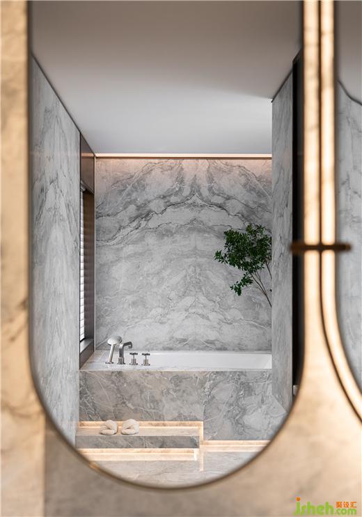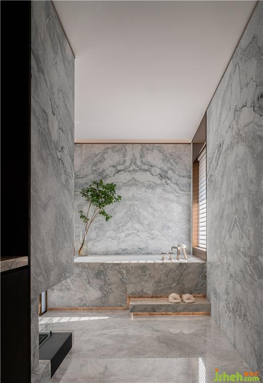 靈動、雋永的主衛(wèi),以大理石鋪就,釋放出溫煦的自然之美,豐富的光感,舒適的視覺呈現(xiàn),配合浴缸與壁爐的溫馨打造,北京半山別墅設(shè)計賦予更高品質(zhì)與儀式感。