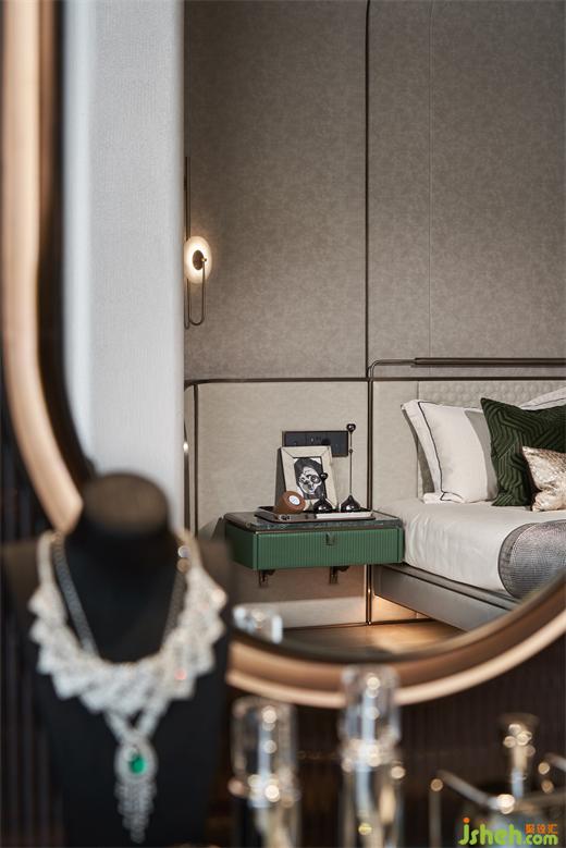 貼心的細(xì)節(jié)總是在不經(jīng)意間被關(guān)照與呵護(hù)。床底與飄窗設(shè)有溫馨、人性化的燈光系統(tǒng),超大化妝臺(tái)的定制,床頭及衣柜的一體設(shè)計(jì),處處彰顯著設(shè)計(jì)師對(duì)功能梳理的匠心思考。