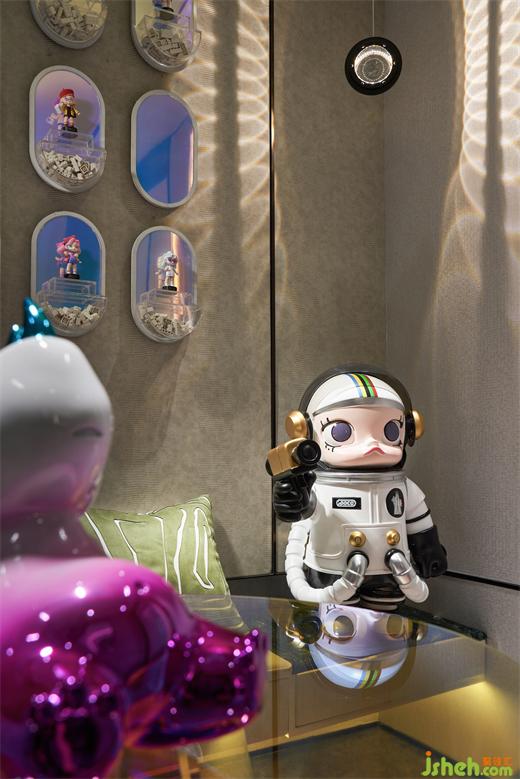 兒童房別具巧思,通過(guò)不同的創(chuàng)意進(jìn)行呈現(xiàn)。女兒房的泡泡瑪特樂(lè)園,色調(diào)鮮活,營(yíng)造一方趣味小景。