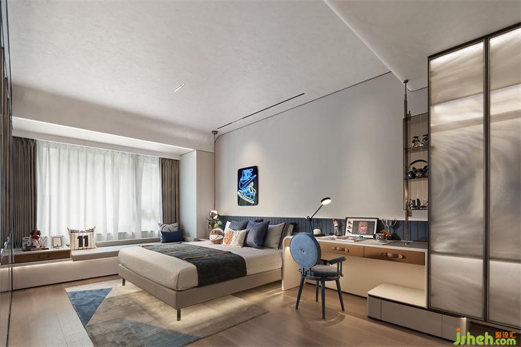 男孩房則通過(guò)AJ元素、籃球文化、球鞋收藏等多元角度,樣板間設(shè)計(jì)打造一個(gè)蘊(yùn)藏?zé)o限活力的小天地。合理的展陳形式與集中的綜合收納區(qū),以前瞻性視角引導(dǎo)優(yōu)質(zhì)生活。