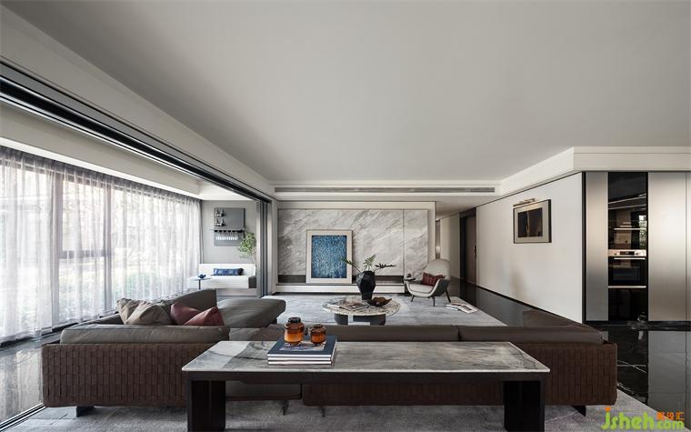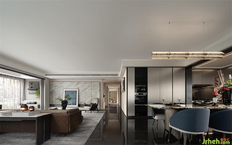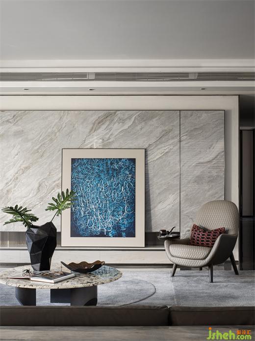 落地窗將繁華與景致盡收眼底,訴說著包容、開放的都市之美。客廳更是家庭聚會的互動空間,暢通的洄游動線,勾勒大宅的非凡氣度。樣板房設(shè)計(jì)以灰調(diào)為基底,在溫潤的木飾面與花紋大理石、金屬等多種材質(zhì)肌理的巧妙碰撞中,極具視覺魅力。