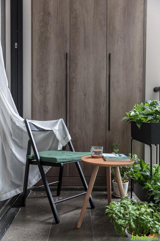 陽臺是主人最喜歡的區(qū)域之一。我們?yōu)樗N植了很多綠植,坐在陽臺,看書,看江,冥想,可以盡情地享受屬于自己的時光。