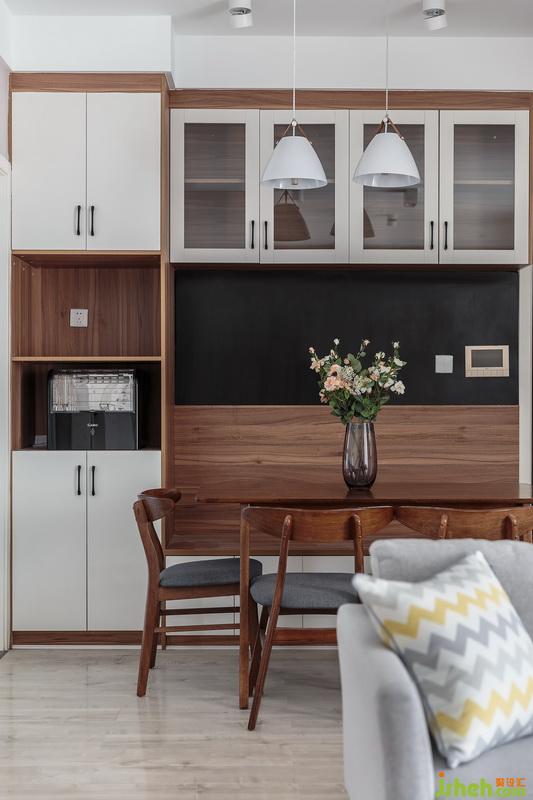 卡座餐廳結合收納柜體設計,合理利用空間,并增加收納機能。