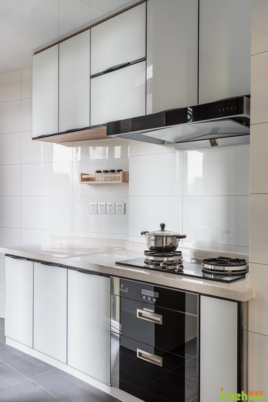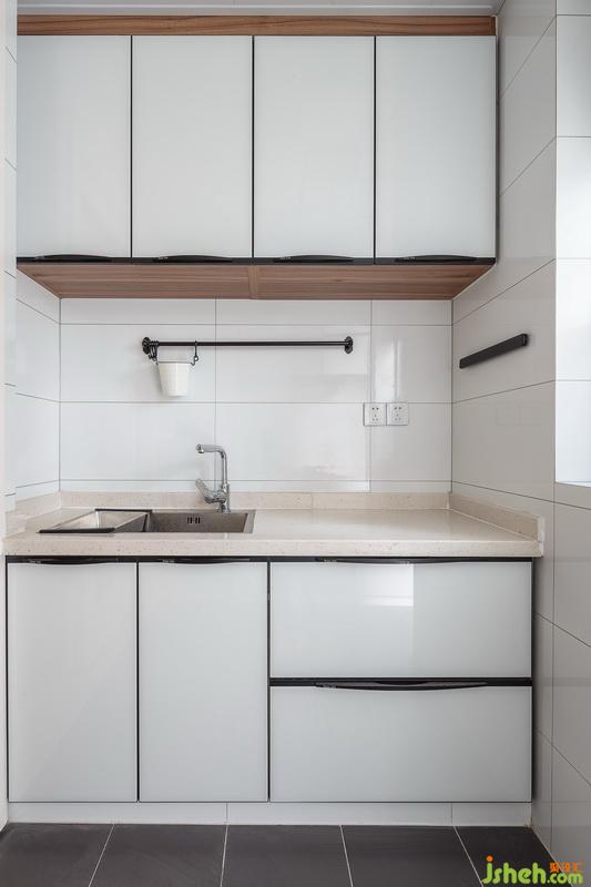 室內(nèi)設(shè)計(jì)師利用廚房另一側(cè)空間安裝櫥柜與水槽。