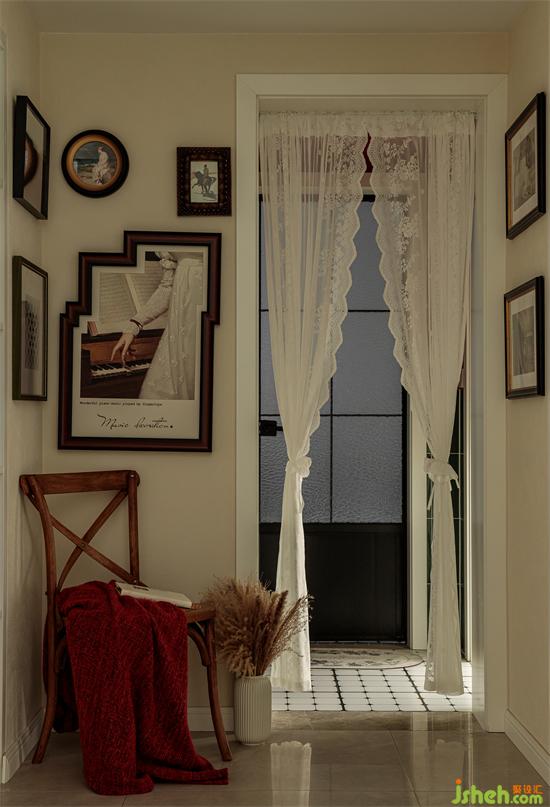 復古的軟裝掛畫和金屬吊燈作為點綴,十畝家裝設計空間的溫馨和舒適感隨即呼之欲出了。