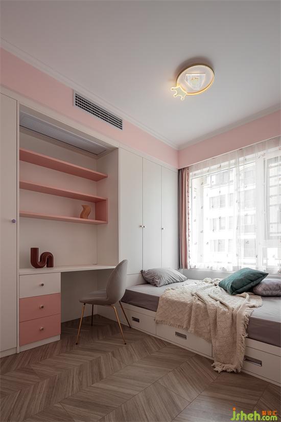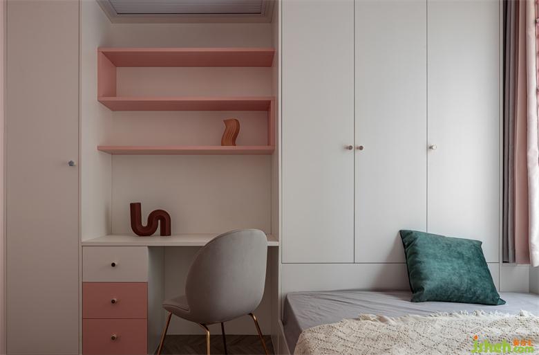 家裝設(shè)計以淺色系為主,用了代表著少女的浪漫粉色加以裝點。