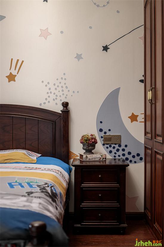 臥室延續(xù)了典雅大氣的氛圍,背景墻選擇了暗色花系,顯得淡然莊重。十畝家裝設(shè)計(jì)在滿足實(shí)用的情況下,盡最大可能保證了空間的朗闊,提升舒適感。