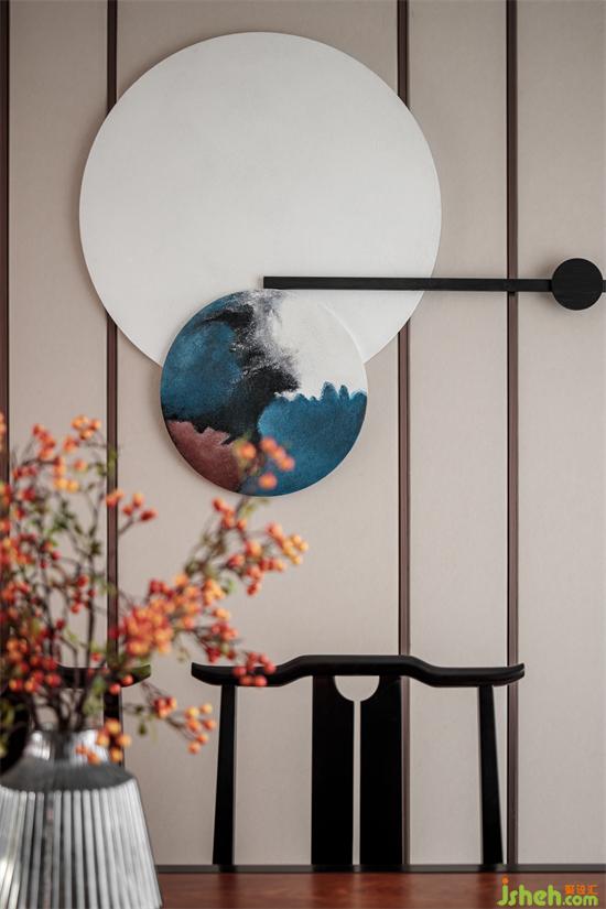 墻面、頂面線條方正,空間布局對稱平和,體現(xiàn)出儒家傳統(tǒng)思想中的“中庸之道”。家裝設(shè)計(jì)色彩搭配一深一淺,暗合道家“太極陰陽”之法。二者相得益彰,渾然一體。
