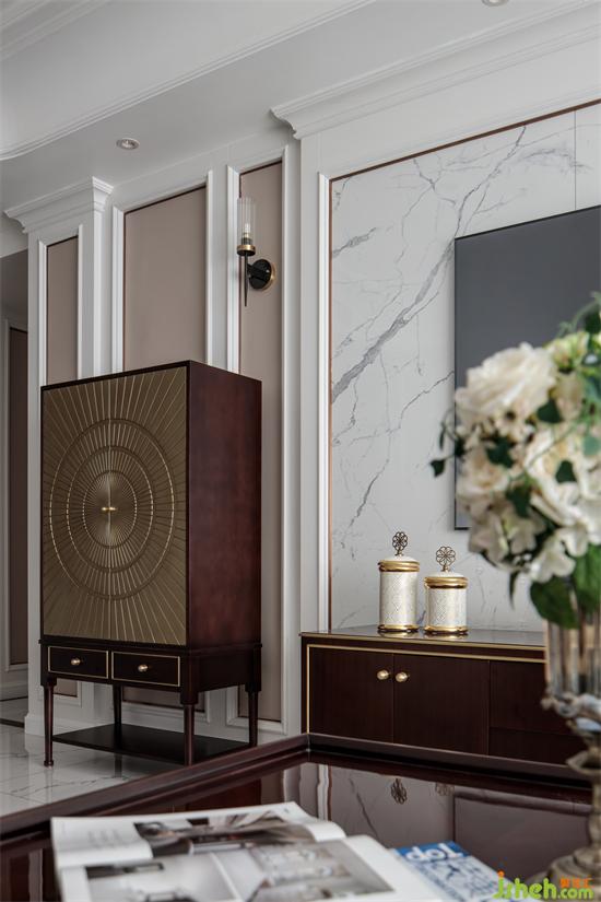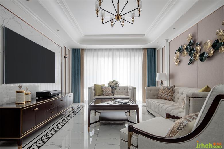 金色邊的點(diǎn)綴和背景墻的裝飾相映成趣,增添了幾分復(fù)古情懷,提升了整個(gè)空間的格調(diào)。家裝設(shè)計(jì)沙發(fā)分位擺放,布局緊湊合理,實(shí)用性更強(qiáng)。