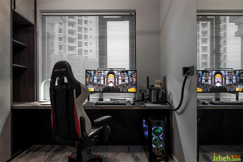 衣帽間一體式定制書柜書桌,預(yù)留了足夠的休閑娛樂空間,家裝設(shè)計給人秩序井然之感。