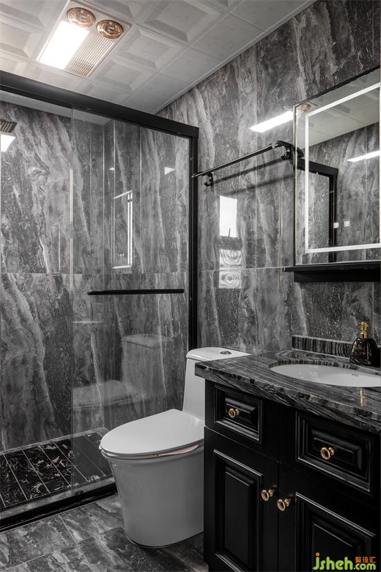 衛(wèi)生間增加了玻璃隔斷,家裝設(shè)計(jì)不影響視覺空間,同時(shí)也做到了干濕分離。