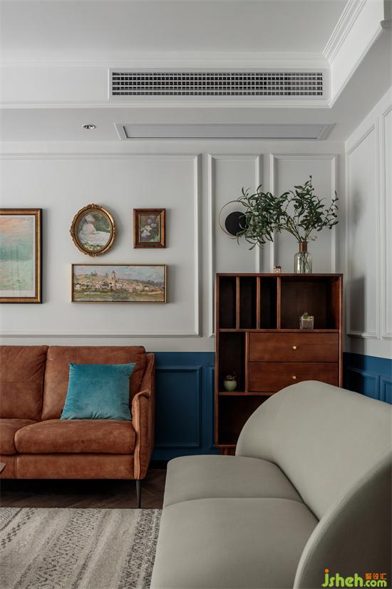 The color collision treatment of public space, the upper wall is painted with gray and white, classic and versatile; The lower wall is painted with ink blue. The color separation process makes the color of the whole space rise, more and more without disorder, which increases the sense of hierarchy and contrast, and the style is full.