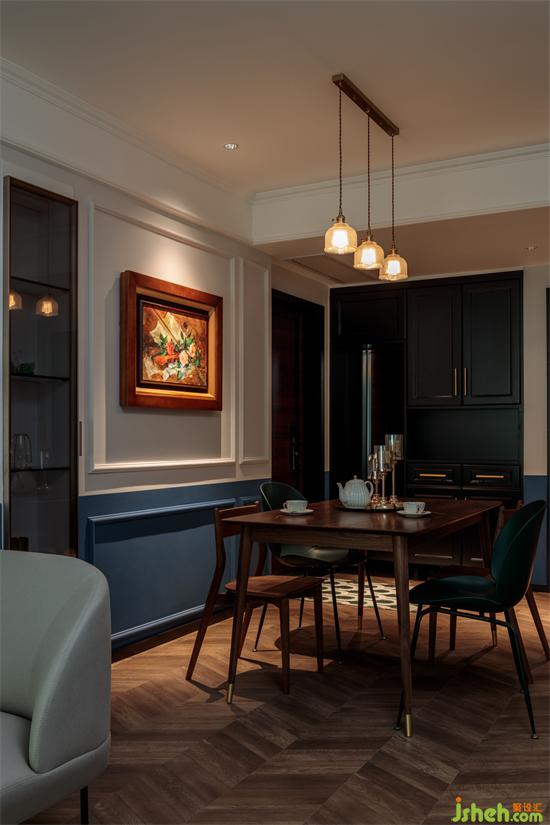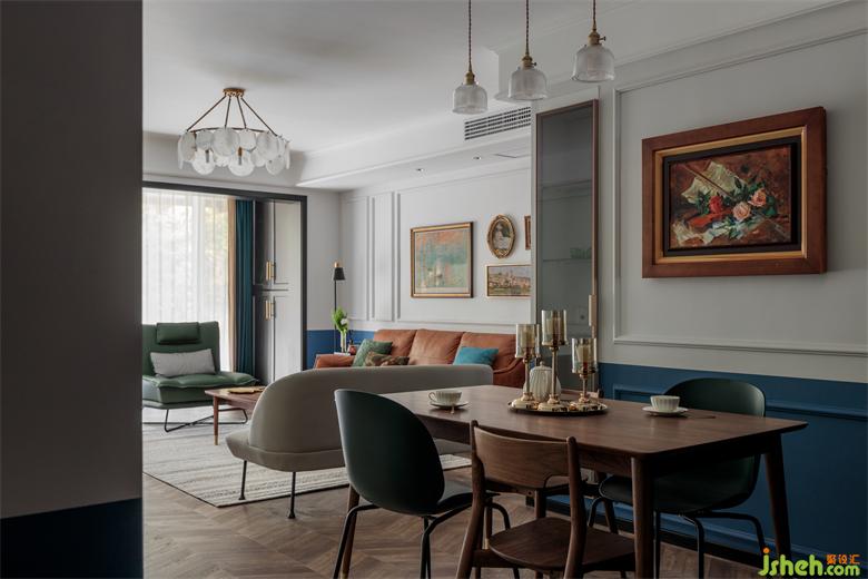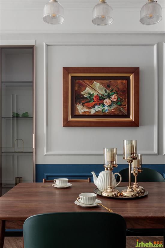 現(xiàn)代北歐桌椅搭配古典油畫,家裝設(shè)計(jì)幾何線條增加復(fù)古莊重感。簡而不繁,只需寥寥幾筆。