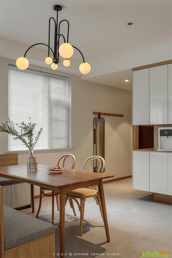 陽光透過百葉窗,均勻地灑進(jìn)屋里。家裝設(shè)計(jì)清新的白色和溫暖的木色搭配在一起,所有的煩躁不安在這一刻被治愈,空氣也變得寧靜溫柔起來。