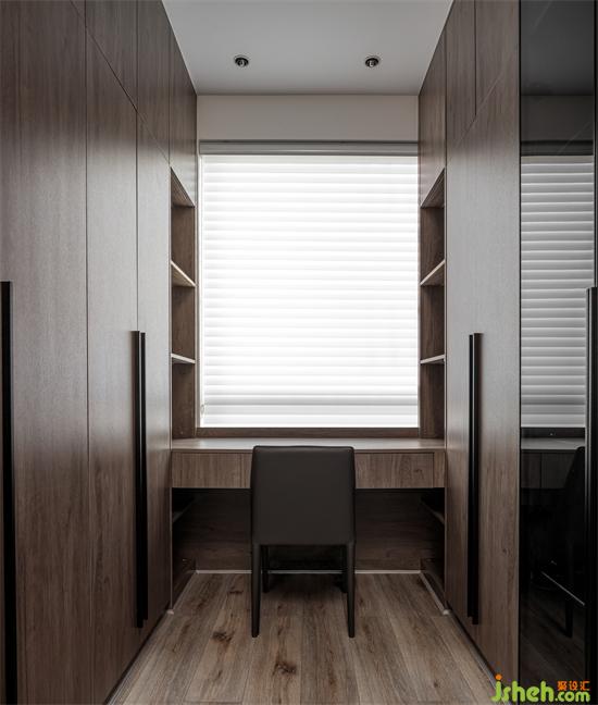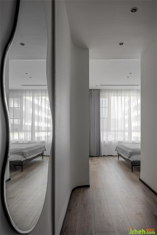 富有曲線美的穿衣鏡給整個(gè)空間增添了一絲柔美溫馨的感覺。