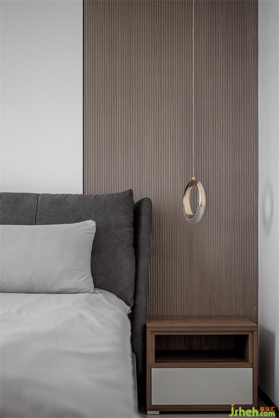 The bedside background wall also uses the color block matching principle to enrich the sense of spatial hierarchy.