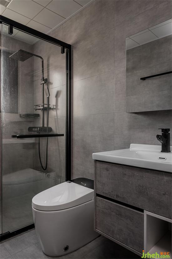 衛(wèi)生間以灰色為基調(diào),家裝設(shè)計(jì)增強(qiáng)空間質(zhì)感,讓整個(gè)空間顯得干凈、純粹。