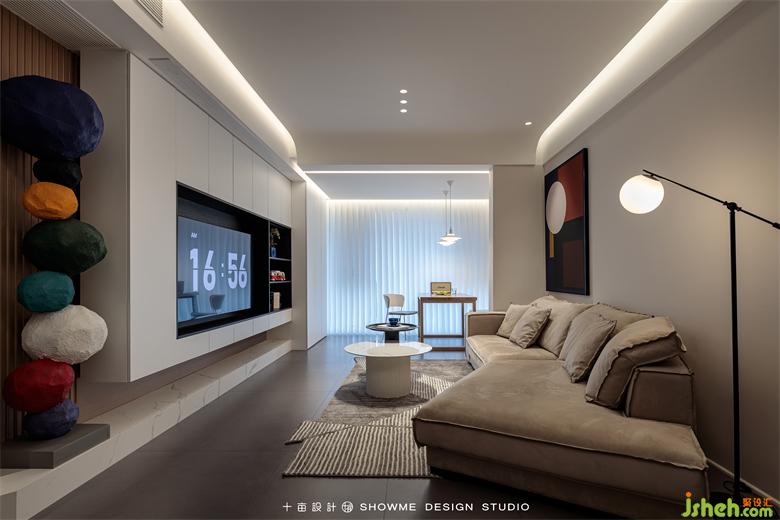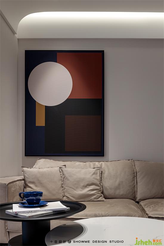 客廳的家具搭配打破傳統(tǒng)規(guī)則的L型沙發(fā)+方形茶幾,改為翅膀型沙發(fā)+圓形錯位茶幾的組合,靈活性和實用性都大大增強。