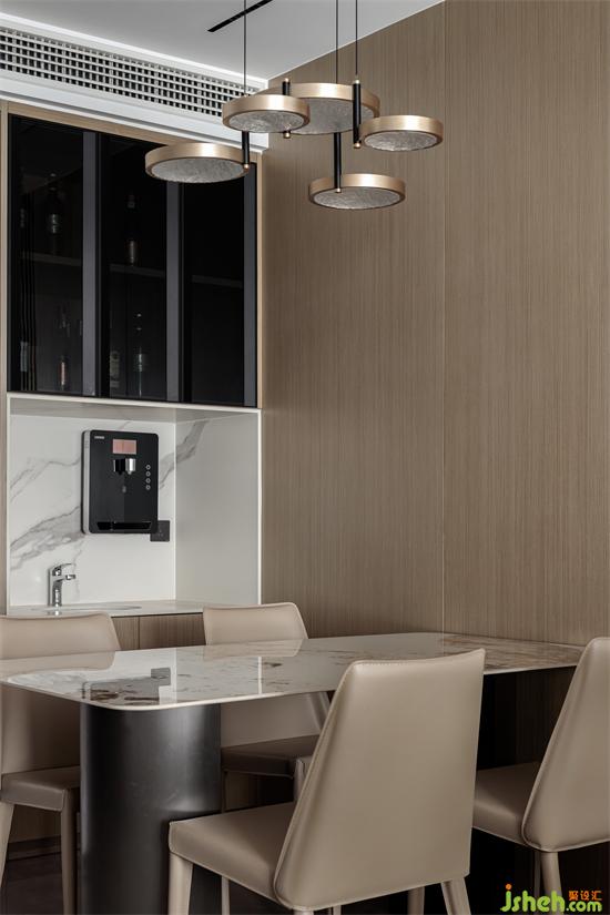 用好每一寸空間,定制餐邊柜與雙開(kāi)門(mén)冰箱嚴(yán)絲合縫,是精巧嚴(yán)謹(jǐn)?shù)脑O(shè)計(jì)帶給強(qiáng)迫癥的福音。家裝設(shè)計(jì)同時(shí),便捷的實(shí)用性也毋庸置疑,用餐環(huán)境變得舒適省心。