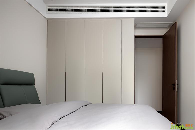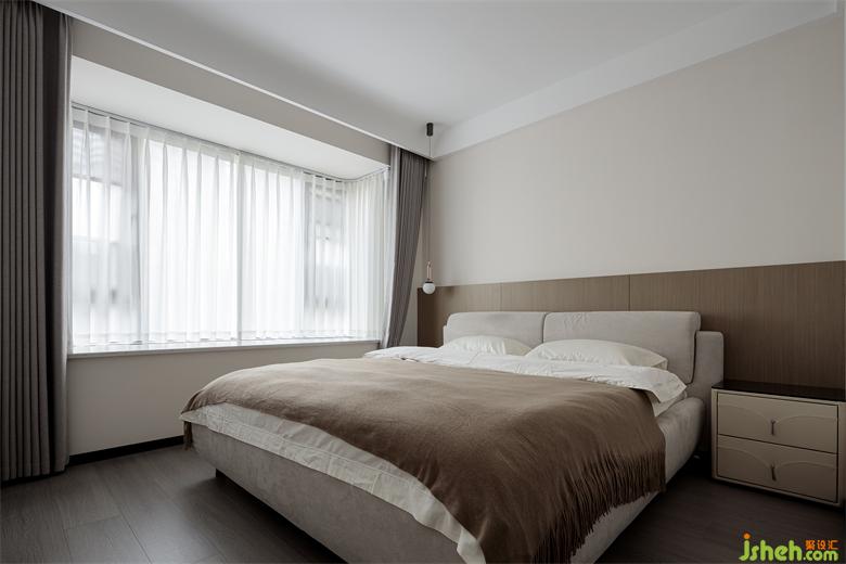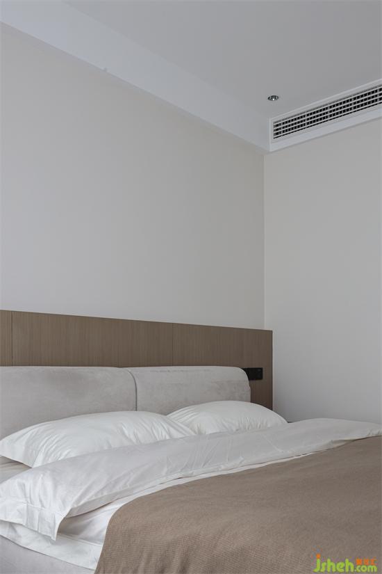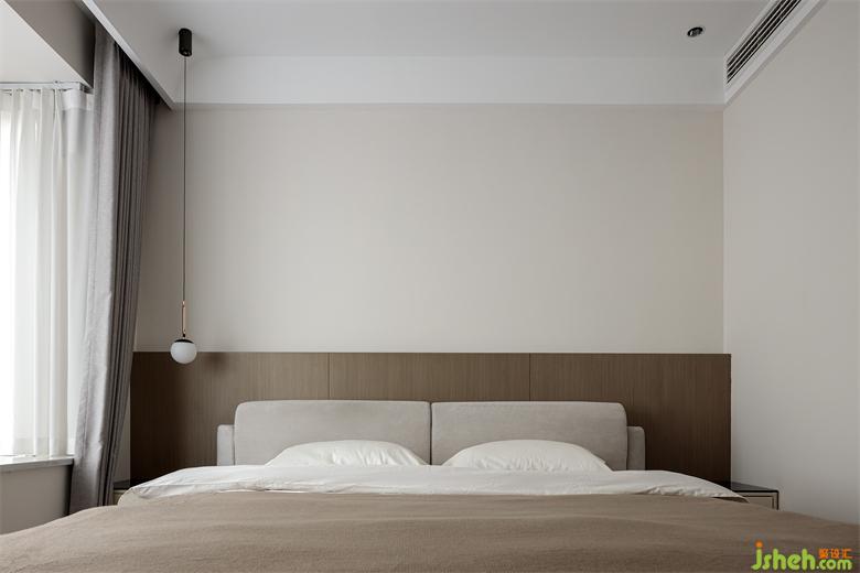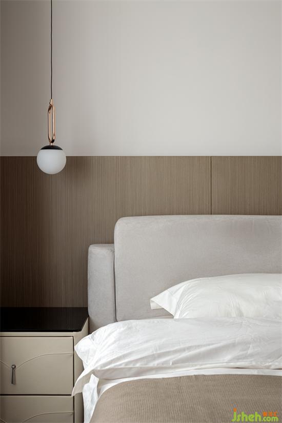 公共區(qū)域的氛圍延續(xù)到私密空間,有了不一樣的表達(dá)。白色、木色、咖啡色的素色拼搭,讓臥室靜謐下來,顯出一種從容不迫的沉穩(wěn)。
