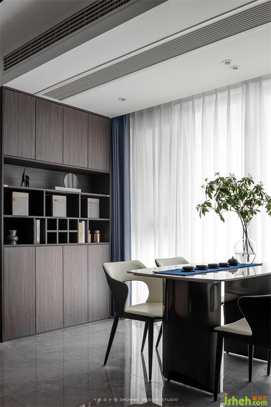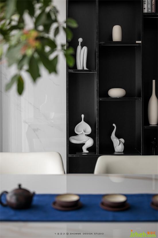 儲(chǔ)物柜開(kāi)合有度,造型獨(dú)特的擺件提升家的藝術(shù)格調(diào),金科王府家裝設(shè)計(jì)讓客廳擁有了最全面完整的功能。