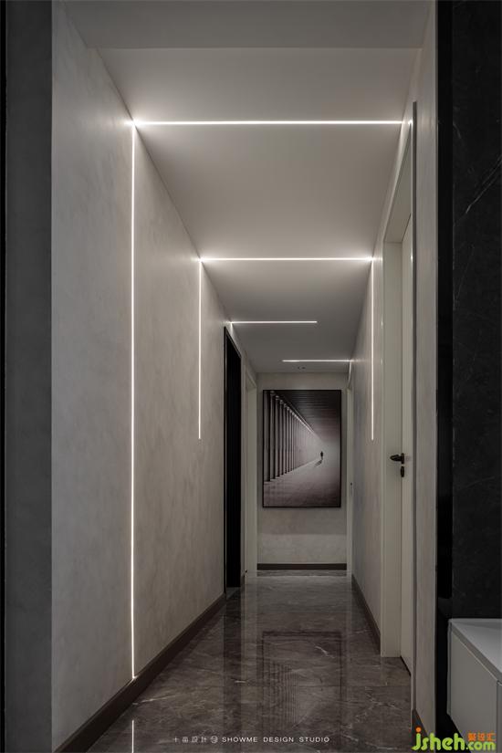 線性燈帶營造出動與靜的變化,是整個空間最亮眼的設(shè)計。