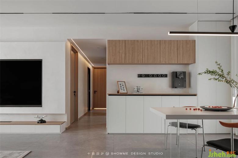 餐廳靠墻設(shè)置了吧臺,午后在這里沖泡一杯濃郁的咖啡,國賓上院家裝設(shè)計增添了生活的無限美好可能。