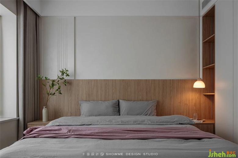 半墻木質(zhì)靠背的設(shè)計讓整個空間有了清晰的層次,摒棄傳統(tǒng)的臥床造型,國賓上院家裝設(shè)計只需要搭配一張簡單潔凈的床框床墊,就能打造出溫馨舒適的睡眠空間。