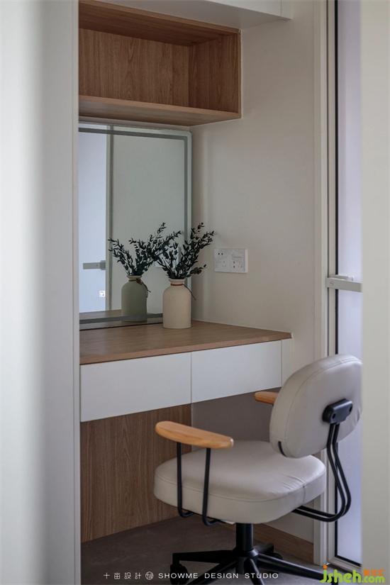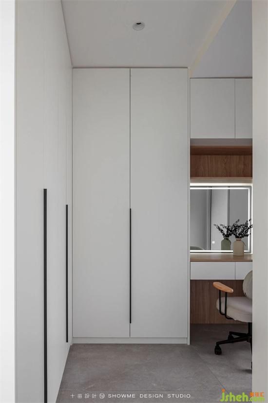 衣帽間除了有超大容量的儲(chǔ)物衣柜外,還增設(shè)了一個(gè)定制化妝桌柜,國(guó)賓上院家裝設(shè)計(jì)空間功能更加多樣化。