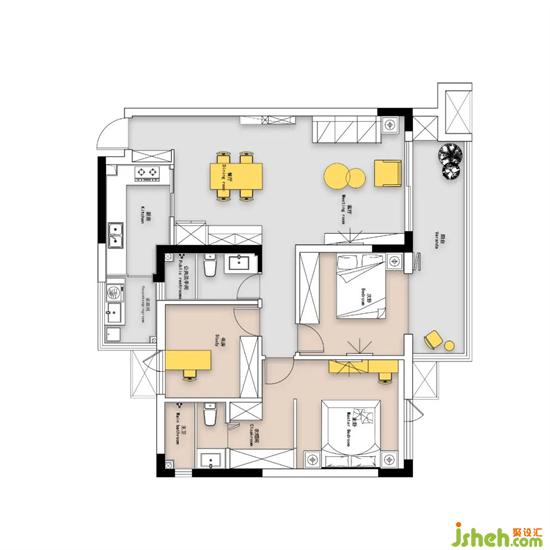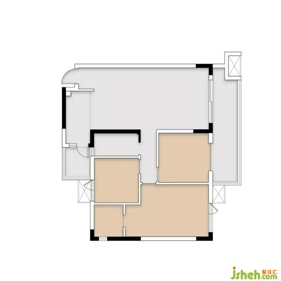 ①房間位三室,基本尊重了原有格局,只在必要處進(jìn)行了些許改動(dòng)。