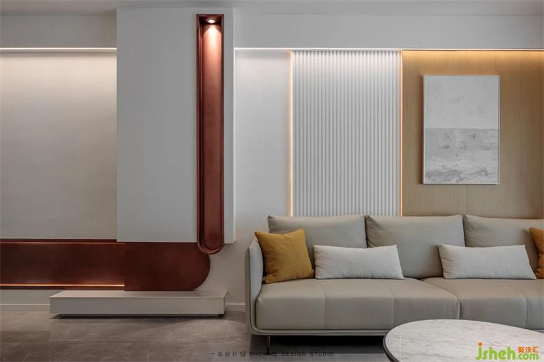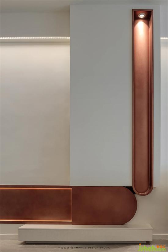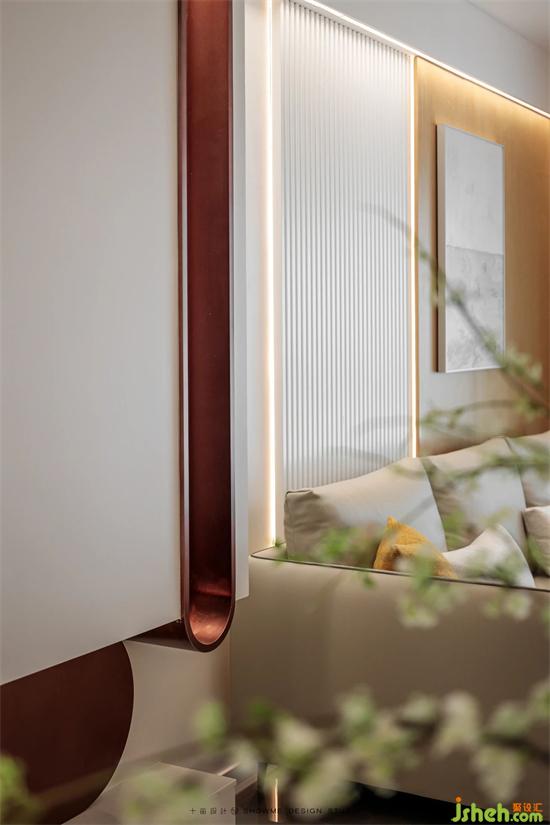 而古銅色的拱形造型,鮮艷欲滴的落地?zé)?,色彩跳?dòng)的搭配,邦泰天譽(yù)家裝設(shè)計(jì)讓整個(gè)客廳在平和的觀感下暗藏一絲妖嬈,增添一絲趣味,是遮掩不住的少女心思。