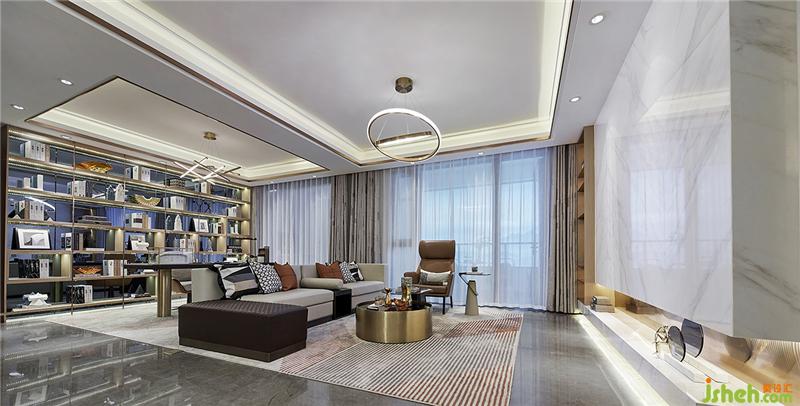 設(shè)計(jì)書房為開敞式書房,與客廳連貫,增大了住戶的感官面積,也滿足了日常生活需求,提升住宅品質(zhì)。樣板房設(shè)計(jì)