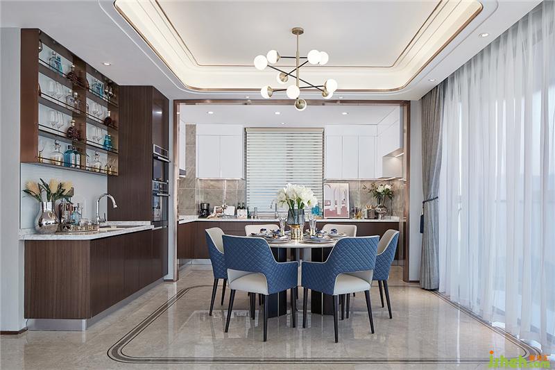整面落地窗的形式,配以南北通的客餐廳空間布置,開闊了居住者的視覺感受,全大理石地面,突出居住品質(zhì)及生活質(zhì)量,中西廚的設(shè)置,配上圓桌的設(shè)計,不僅給一家人提供了生活的樂趣,更給居住者提供了聚會交流的場地,使居住者更能體會到尊享感。樣板房設(shè)計