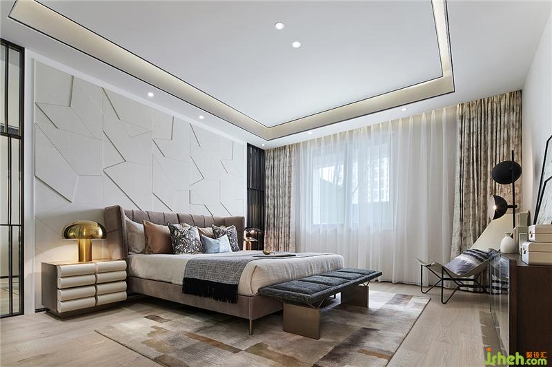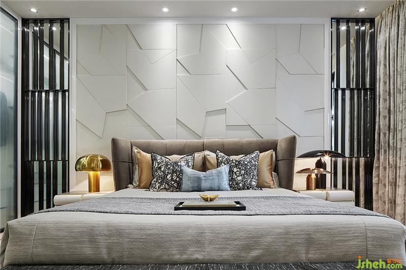 移步主臥,設(shè)計(jì)師回應(yīng)了對(duì)經(jīng)典時(shí)代的懷念,并進(jìn)行當(dāng)代再造,主臥色調(diào)溫馨柔和,家具輪廓瑰麗華美,奢華大氣,無(wú)一不流露著那份高貴典雅,營(yíng)造溫馨華貴的海派氣氛,落地?zé)襞c小邊幾的金屬質(zhì)感,在令人回望老上海的摩登與高貴時(shí),亦更沉醉于現(xiàn)代生活的精致。