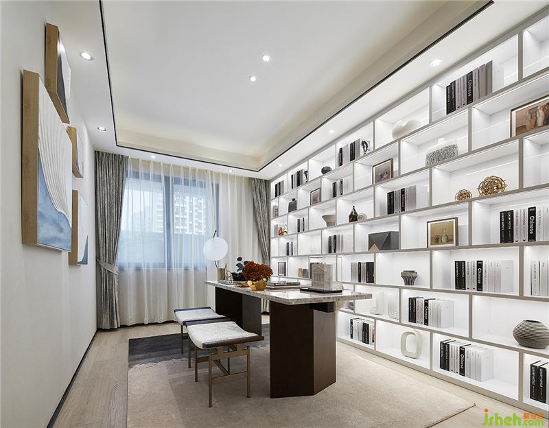 儒雅書卷氣,一身翰墨香。書房是一個(gè)家的文化載體。書房以質(zhì)感、沉穩(wěn)的新海派風(fēng)格家具,在整體色彩上以白色調(diào)為主,加一些小面積的金屬與藍(lán)色點(diǎn)綴,打造低調(diào)輕奢氛圍