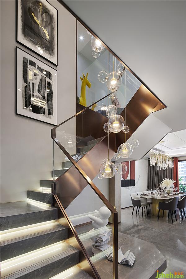 不銹鋼金屬的明亮精致與石材的剛硬冷冽相互交織,勾勒出獨特的空間氣質。樣板房設計
