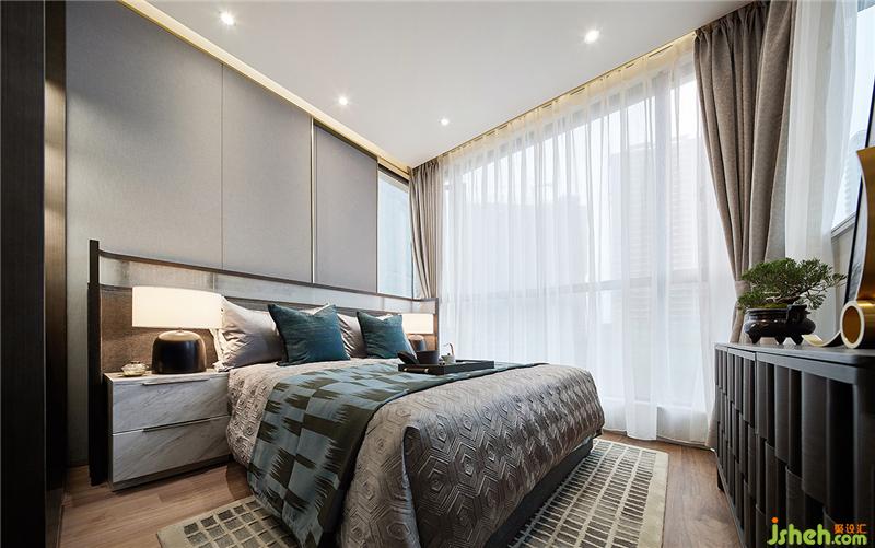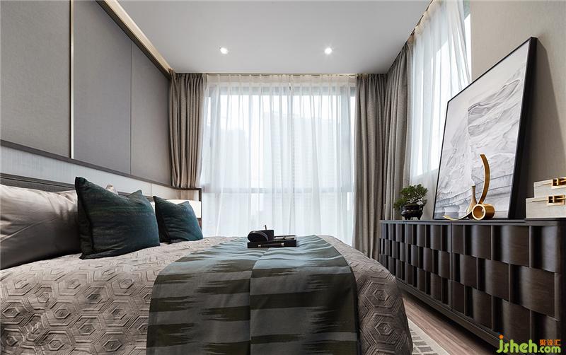 空間的美不一定是更多的商業(yè)裝飾。保留建筑本身的特性,在三面環(huán)繞窗戶的空間里,可開(kāi)可合的床背景保證了空間的完整性,亦可釋放空間的美。樣板房設(shè)計(jì)
