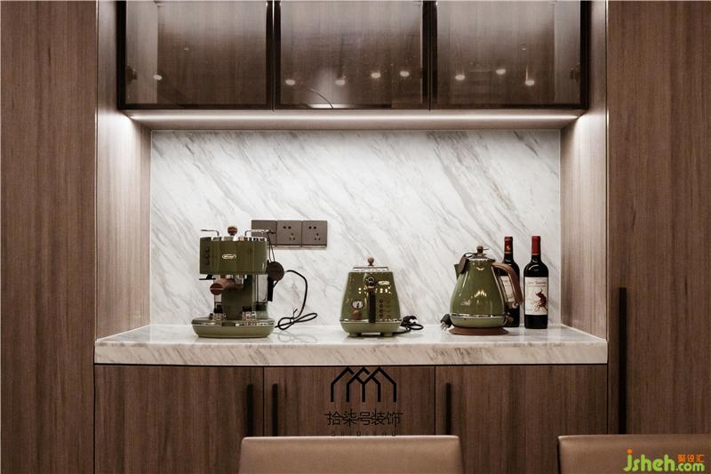 小型的水吧臺(tái)用作日常的生活需求,泡一杯咖啡,制作簡(jiǎn)單的西式早點(diǎn)。