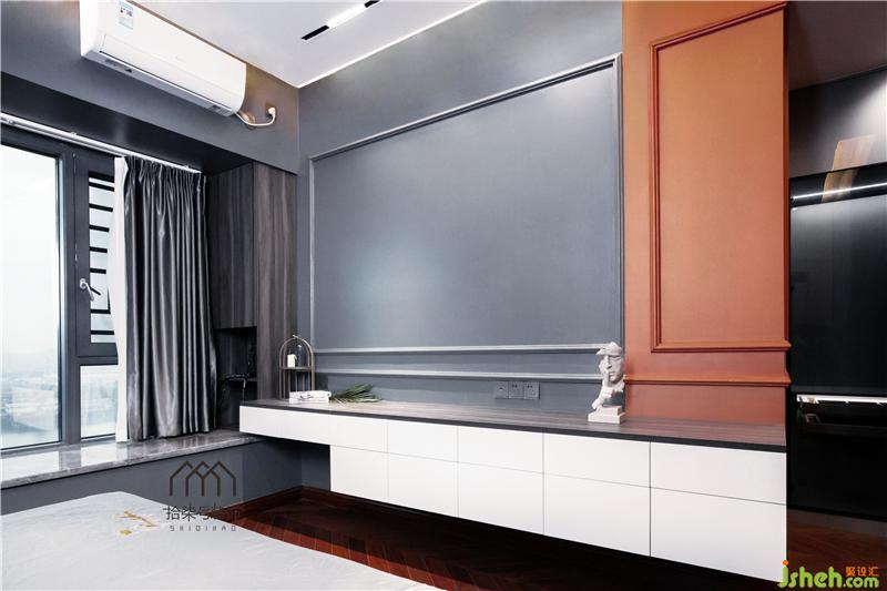 沉穩(wěn)的深灰搭配活力的橙,摒棄傳統(tǒng)的簡(jiǎn)約臥室打造充滿時(shí)尚、前衛(wèi)的臥室。