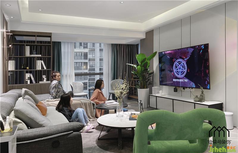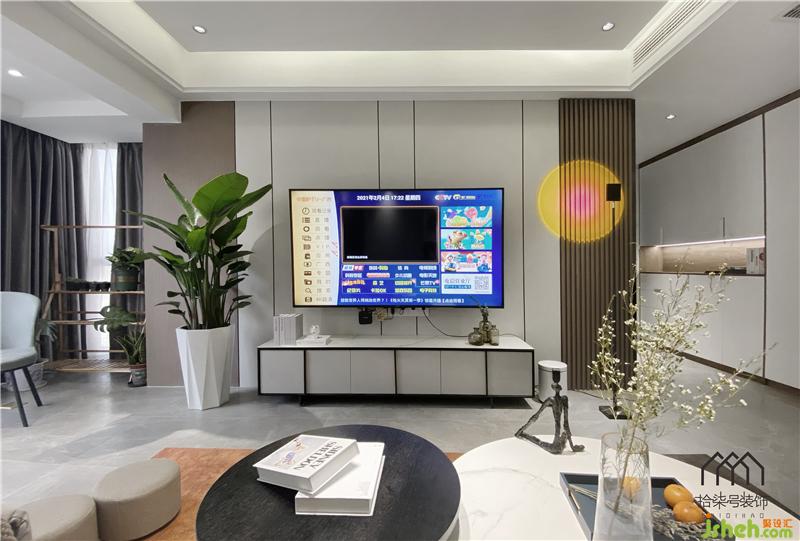 墻面使用了偏暖色木紋的木飾面加上不缺現(xiàn)代的奶茶灰進(jìn)行搭配,客餐廳無(wú)主燈設(shè)計(jì),顯得空間更加溫柔,光線照射到軟裝上,不張揚(yáng)也不俗氣??蛷d打通至陽(yáng)臺(tái),柳州家居設(shè)計(jì)做了一組隔斷柜,作為日常雜物收納實(shí)用性滿(mǎn)滿(mǎn)。