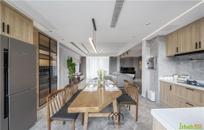 簡(jiǎn)約小北歐風(fēng)的原木色家具是整個(gè)家的亮點(diǎn),開放式的廚房,墻面光滑的瓷磚鋪貼碰上自然純樸的原木,材質(zhì)的碰撞讓空間更加有生動(dòng)有氣息