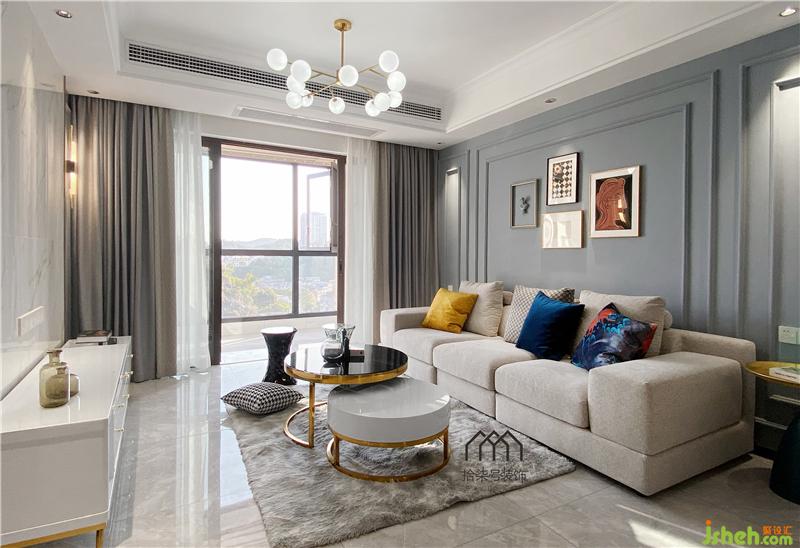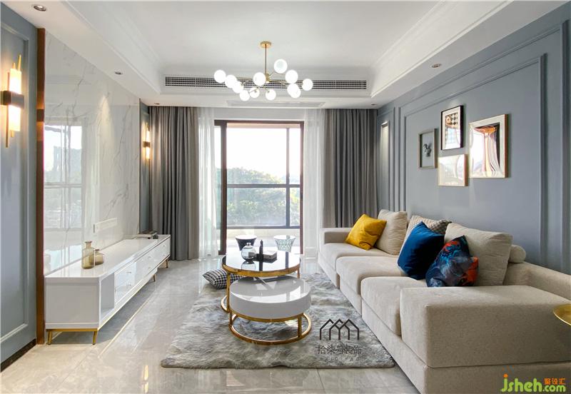 柳州家居裝修空間的色調(diào)是小清新的霧面藍(lán)搭配素雅的大理石白,柔軟的布藝沙發(fā)讓人一看就想在上面躺一躺。