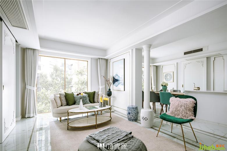 島臺邊的酒柜可以放一下零食、酒水和做點心用的原料和工具方便拿取和收納,餐桌邊的餐邊柜可以放一些餐具也是一個很美觀的裝飾品。室內(nèi)設(shè)計師考慮到三代人除了日常生活的交流外,在休息時還需要各自獨立的空間,就在客廳和餐廳分別通往房間的過道位置各加了一扇門移門。