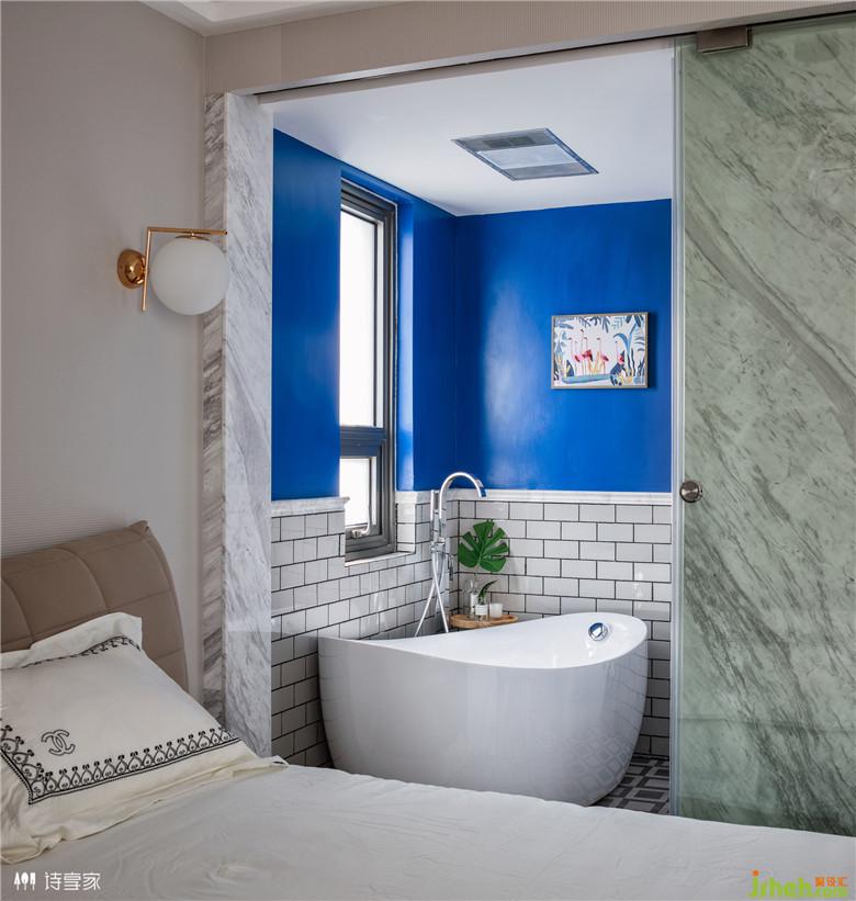 明亮的藍(lán),強烈的視覺沖擊,室內(nèi)設(shè)計師搭配幾何線條,滿滿靈動的美感。