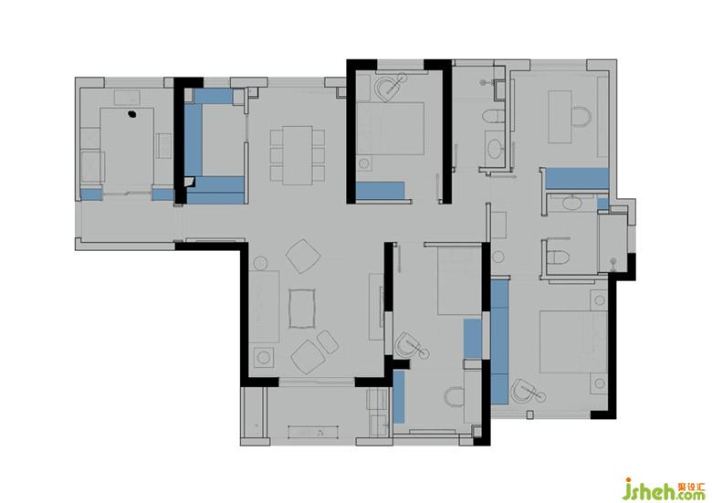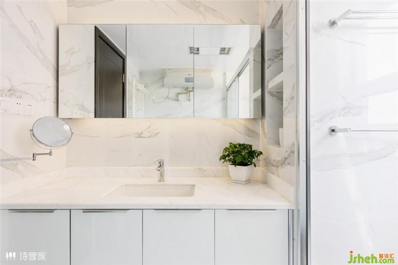 將次衛(wèi)干區(qū)縮小,隔出一個玄關(guān)。這樣的調(diào)整,解決了廚房餐廳比較小的問題,也完美的避開入戶門與主臥門相對的困擾,還增加了主臥的私密性和舒適性。