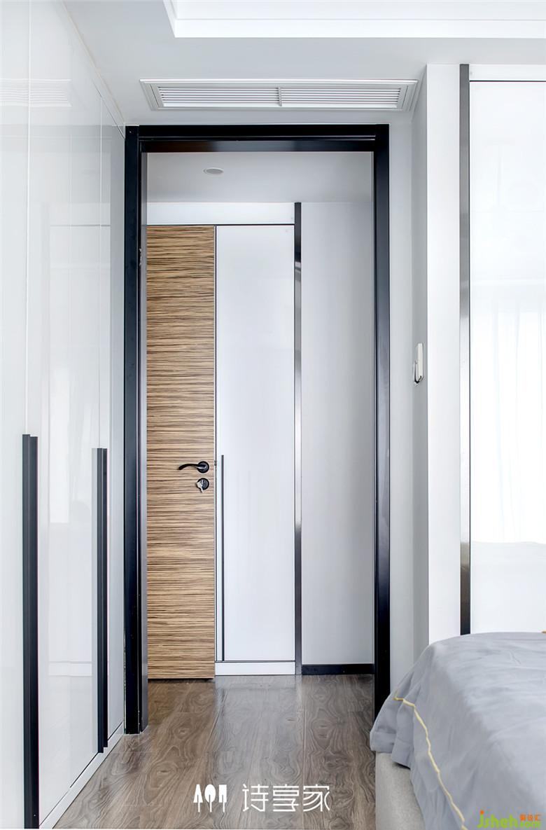 主衛(wèi)在保證正常實(shí)用空間的情況下縮短長(zhǎng)度,室內(nèi)設(shè)計(jì)師調(diào)整主臥的進(jìn)門(mén)位置,辟出一整面衣柜,增加儲(chǔ)物功能的同時(shí)還增加了主臥的私密性和舒適性。