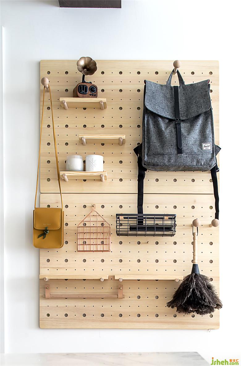 極具北歐風情的木質(zhì)洞洞板,是收納神器,非常靈活和便利,也是很有質(zhì)感的裝飾。