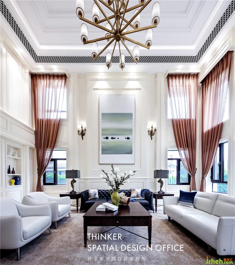 調(diào)整了二樓走道位置,加強(qiáng)了原有挑空客廳的效果,讓空間更顯通透大氣。無論是橫向還是縱向,不同維度的墻面造型,都經(jīng)過精心調(diào)整,呈現(xiàn)出對稱的平衡美感,詮釋出挑空大宅的雅致與大氣。